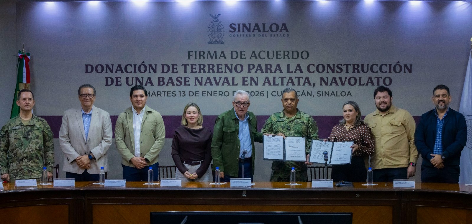 El acuerdo de donación fue signado por el gobernador Rubén Rocha Moya y el comandante de la Cuarta Región Naval, vicealmirante José Daniel Reséndiz Sandoval, durante un acto protocolario realizado en el Salón de Gobernadores de Palacio de Gobierno. Este nuevo predio se suma a las 10 hectáreas previamente donadas para el mismo proyecto.