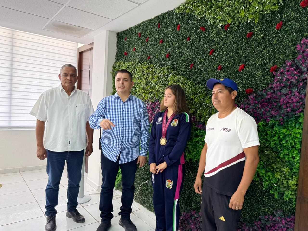 Durante el encuentro, Rivera estuvo acompañado por el director de Deportes, Albino Soberanes Rubio, y el entrenador Martín Astorga, con quienes reafirmó su compromiso de brindar todo el respaldo necesario para que la atleta continúe desarrollando su talento.