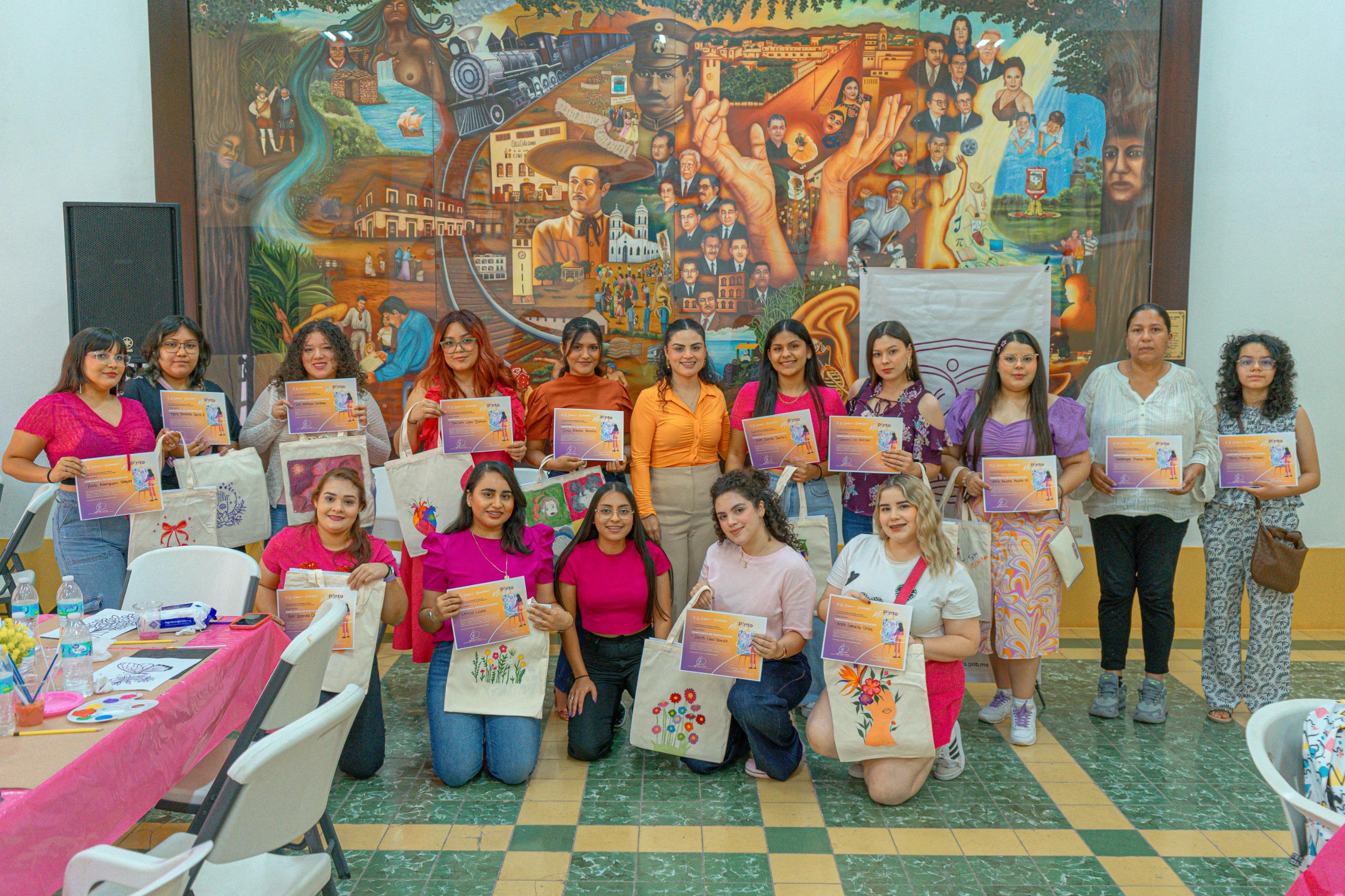 Posteriormente, las participantes realizaron una actividad de pintura decorando bolsas ecológicas con temáticas relacionadas con la charla, generando un espacio de convivencia y creatividad. Todo el material fue proporcionado por el IMJU de manera gratuita.