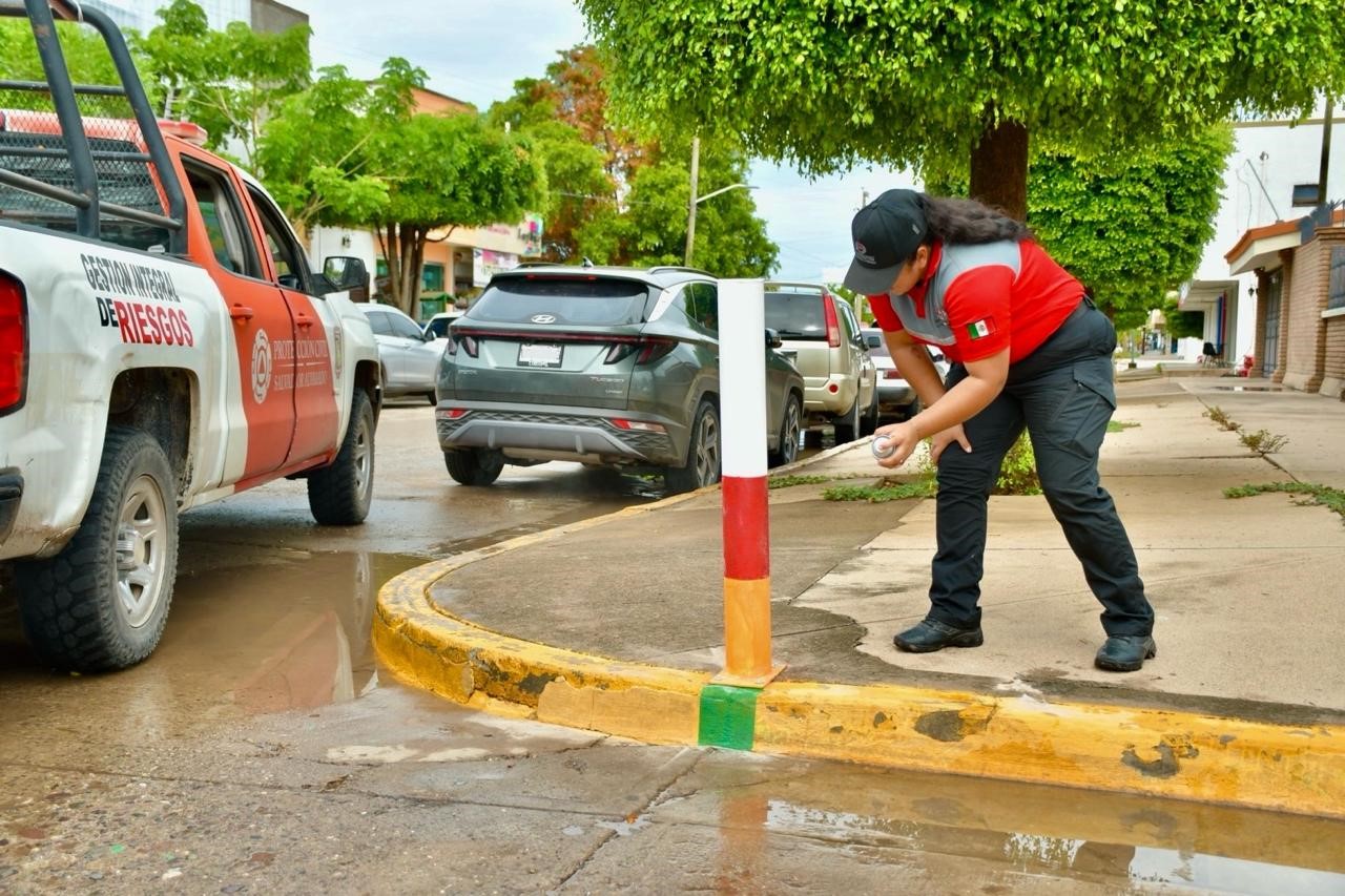 Protección Civil de Salvador Alvarado instala semáforos pluviales en zonas inundables.