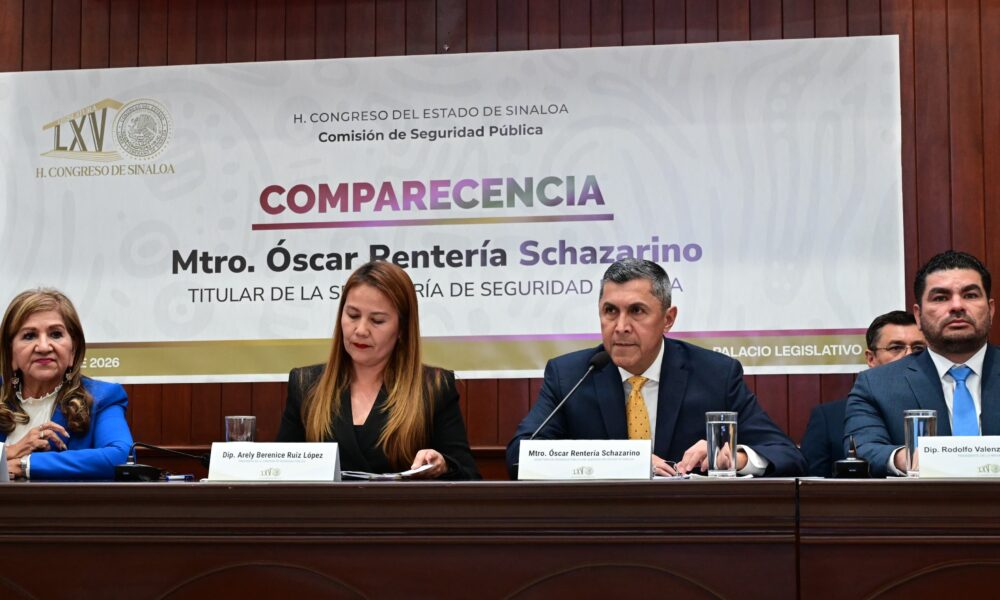 El secretario Óscar Rentería Schazarino compareció ante el Congreso del Estado y presentó avances en detenciones, aseguramientos, tecnología y prevención del delito durante 2025. Culiacán, Sinaloa,...