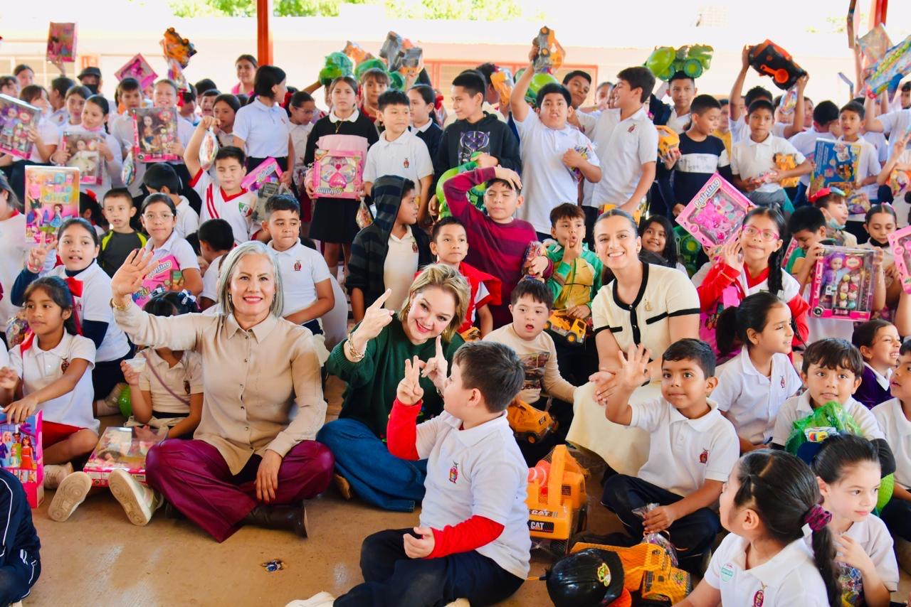 La visita fue encabezada por la presidenta del DIF Sinaloa, Eneyda Rocha Ruiz, quien estuvo acompañada por la presidenta municipal de Salvador Alvarado, Lupita López González, durante la distribución de apoyos y las actividades dirigidas a la niñez del municipio.
