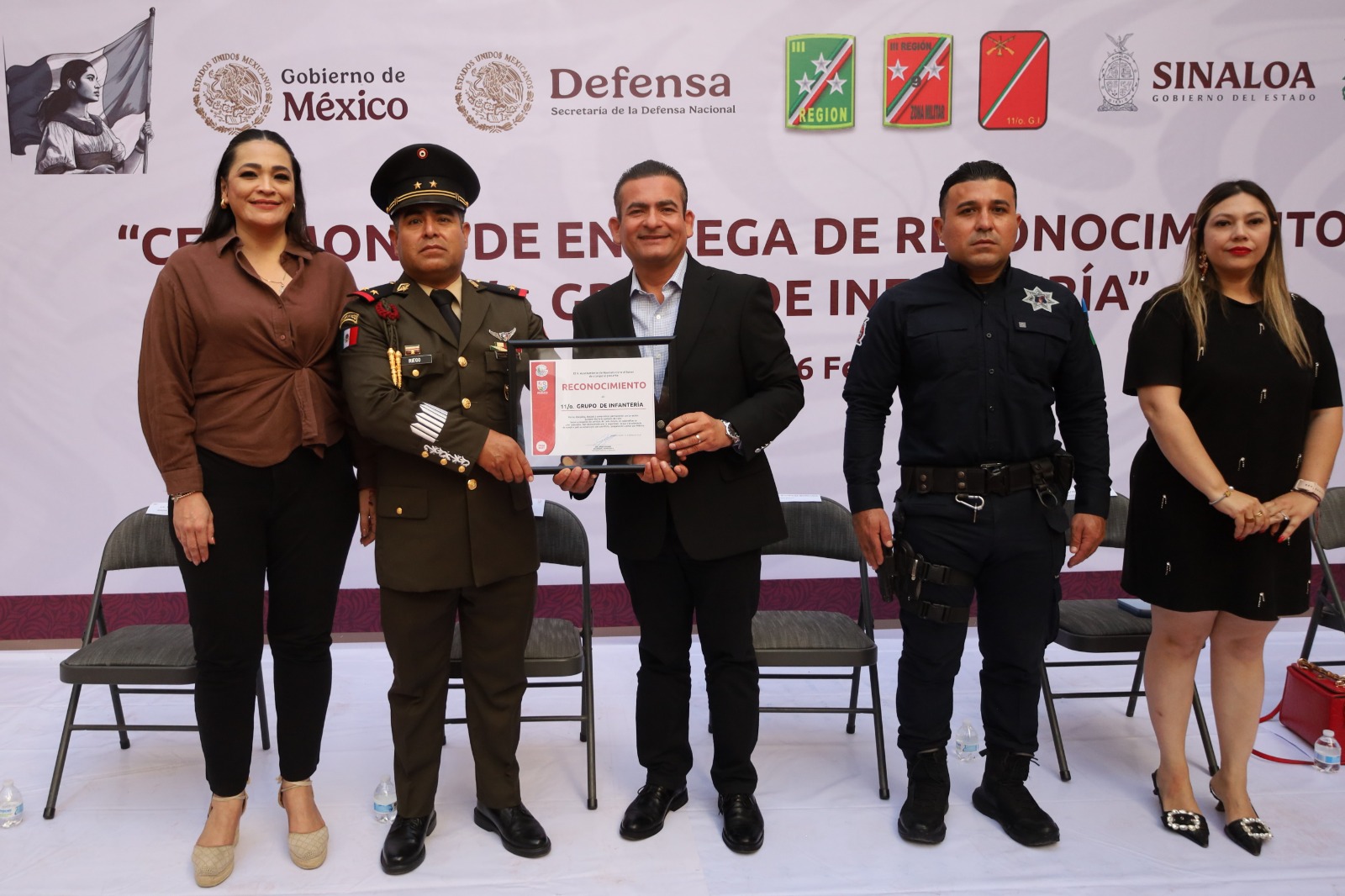 El reconocimiento fue recibido por el Teniente Coronel de Infantería de Estado Mayor Armando Riego Fabián, comandante del 11/o Grupo de Infantería, quien agradeció la distinción y reiteró el compromiso del Ejército Mexicano de seguir colaborando con las autoridades municipales con apego a la ley y respeto a la ciudadanía.